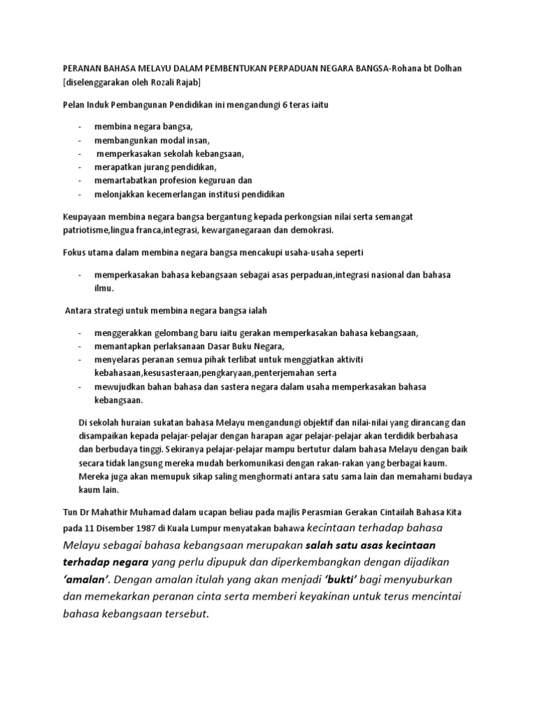 Peranan Bahasa Melayu Dalam Pembentukan Perpaduan Negara Bangsa Pdf